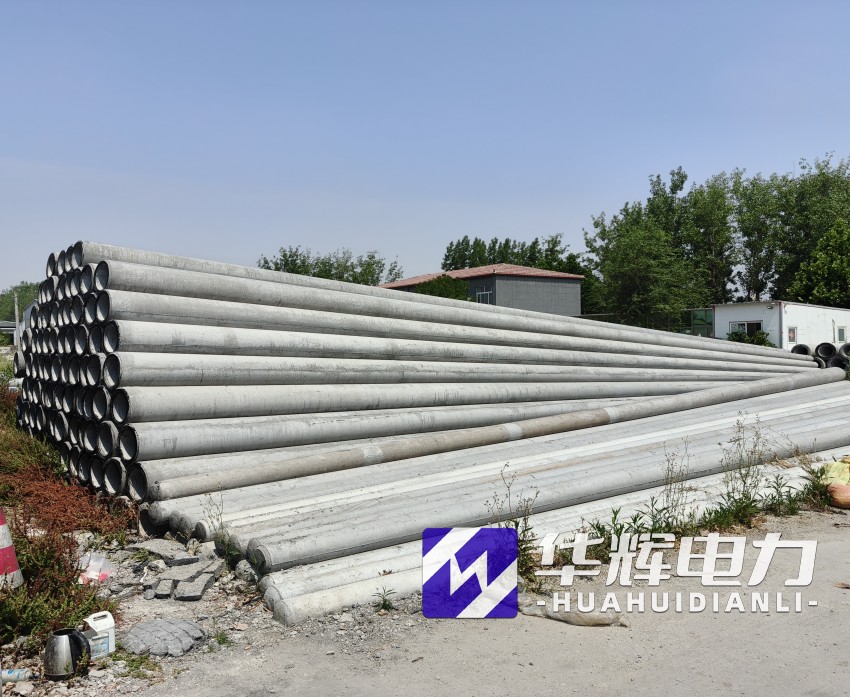 8米山亭水泥电线杆通常采用钢筋混凝土离心成型工艺,杆体呈锥形结构,梢径150mm-190mm,根径230mm-270mm,壁厚40mm-50mm。根据标准GB/T4623-2014,产品混凝土强度等级不低于C40,主筋采用HRB400级钢筋,配筋量根据抗裂弯矩要求设计,标准抗裂弯矩可达12-18kN·m,破坏弯矩不小于24kN·m。杆体重量约0.5-0.8吨,运输安装便捷,适合人工或小型机械施工。